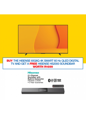 - Hisense 65"(165cm)60hz Qled Tv 65q6qRegular Price R 10,499.00 Special Price R 8,999.00