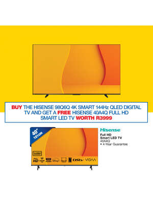 - Hisense 98" (249cm) 144hz Qled Tv 98q6qRegular Price R 29,999.00 Special Price R 24,999.00