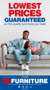 2 MONDAY TUESDAY WEDNESDAY THURSDAY FRIDAY SATURDAY SUNDAYS & PUBLIC HOLIDAYS 8:00 - 18:00 8:00 - 18:00 8:00 - 18:00 8:00 - 18:00 8:00 - 18:00 8:00 - 17:00 8:00 - 14:00 9:00 - 17:00 9:00 - 16:00 9:00 - 16:00 9:00 - 15:00 9:00 - 17:00 TRADING HOURS 1ST & 4TH SUNDAY OF EVERY MONTH NDOLA, KITWE, LUSAKA CHILILABOMBWE, SOLWEZI MANSA, KASAMA CHIPATA, MONGU, MAZABUKA PUBLIC HOLIDAYS SOLWEZI, KITWE, LUSAKA LUSAKA SHOP NO. L04, MANDA HILL CENTRE C/O GREAT EAST ROAD & MANCHINCHI ROAD 260 967 448 762 NDOLA KUFUBU MALL, C/O PRESIDENT AVE & T3 HIGHWAY 260 960 457 236 KITWE C/O FREEWAY & CHIWALA AVE 260 963 242 903 CHILILABOMBWE SHOP 13, SHOPRITE CENTRE, CHILILABOMBWE 260 979 386 130 MONGU OKF STORE, MONGU 260 772 976 451 SOLWEZI CITY MALL, TOWN TRAFFIC LIGHTS OLD SHOPRITE 260 769 780 245 MAZABUKA SHOP 1, SHOPRITE CENTRE, T1 ROAD 260 769 988 147 MANSA SHOP M1, SHOPRITE CENTRE 260 775 648 074 CHIPATA SHOP C1, SHOPRITE CENTRE 260 769 805 996 KASAMA SHOP K1 , SHOPRITE CENTRE, GOLF ROAD 260 775 454 669 WE’RE ON WHATSAPP! For latest deals and more, simply add us on +260 967 345 699 We’ll beat any credit instalment offered by competitors. Apply in-store. BEST CREDIT DEAL GUARANTEED LAY-BY AVAILABLE Ts & Cs apply. Ts & Cs apply. Low deposit. Up to 6 months to pay. Interest-free. No monthly service fee. Keep up your credit score by paying your instalments on time! SMART WAYS TO PAY • In any of our stores • Electronic funds transfer https://www.facebook.com/okfurnitureZambia https://www.instagram.com/okf_zambia/ Prices advertised are applicable within Zambia only. All Terms include an initial payment, Sales Tax (subject to change) and interest, but exclude insurance and delivery charges, unless otherwise stated. Accessories displayed are all displayed as extras and are not included in the advertised price. Bring your ID, proof of residence (not older than three months) and three months’ latest payslips/salary advice to ensure rapid response to your credit application. Finance provided by Connect Financial Solutions, a division of JD Home-Tech Zambia Ltd. (Reg No: 120241010728). Enquire in-store for more details or contact (00260) 97 7717 510. Lay-by available on selected stock. Enquire in-store for more details. Standard Terms and Conditions apply. All products indicated in litres are in nett value. Should you find any item cheaper at any other retailer, provide a quote or current catalogue and we will refund the difference plus 5% of the difference. This is conditional on the day of the purchase from OK Furniture and the period for which the price from OK Furniture is valid for, and not thereafter. This offer excludes Store Openings, Clearances and Limited Quantity offers. Due to our vast range, all products may not necessarily be on display in all stores. Should an error occur, or incomplete information be printed in this advertisement, we will display a notice in-store with all the correct details. BRANCHES: CHILILABOMBWE: (00260) 212 380 978, KITWE: (00260) 212 280 010, MANDA HILL: (00260) 211250 772/785, MAZABUKA: (00260) 213 230 031, MONGU: (00260) 217 221 646, NDOLA: (00260) 212 615 110, SOLWEZI: (00260) 212 882 1852/384, MANSA: (00260) 0211 212 81206/821201, CHIPATA: (00260) 0211 216 222 674, KASAMA: (00260) 0211 214 2230/222011, HEAD OFFICE: +27 11 456-7000. No Dealers allowed. E&OE. VALID 6 - 19 OCTOBER 2025, WHILE STOCKS LAST. Ts & Cs APPLY. For details on your nearest branch visit www.okfurniture.co.za CUSTOMER CARE LINE: +27 861 00 88 61 or +27 861 11 32 13 ZAZAOKF269