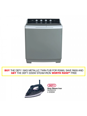 - Defy 15kg Metallic Twin Tub Washing Machine Dtt151Regular Price R 4,299.00 Special Price R 3,990.00